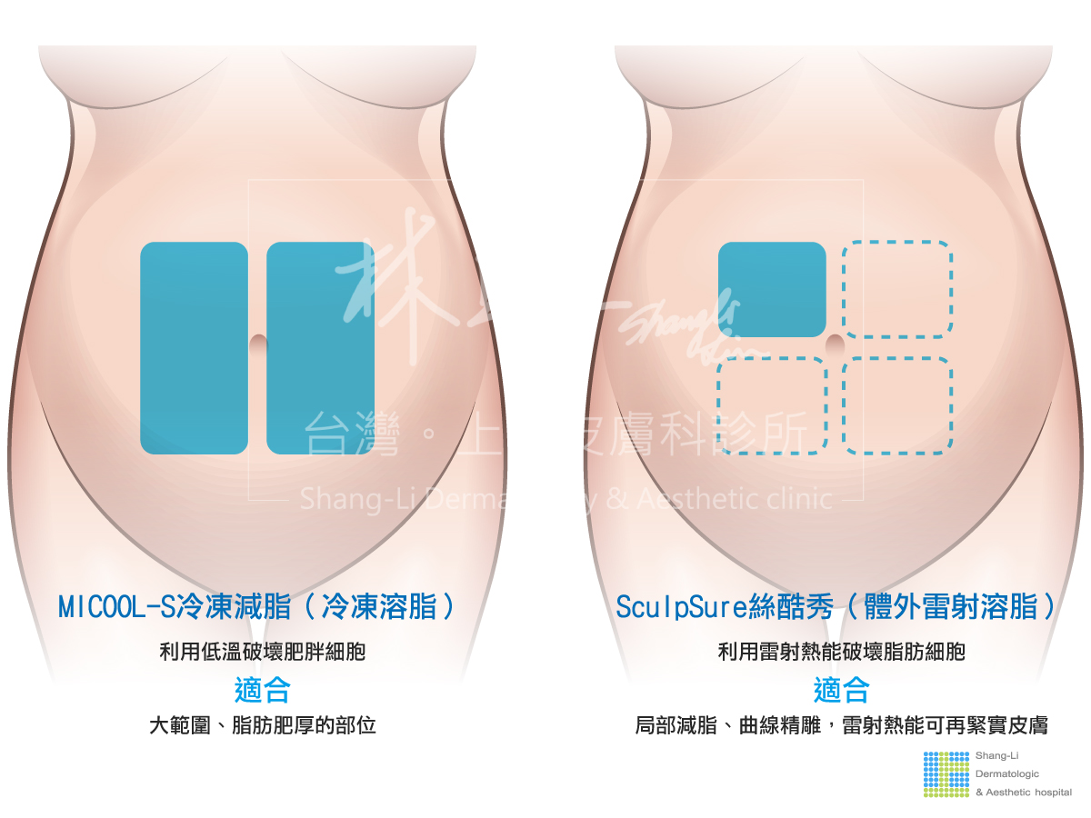▲藉由SculpSure絲酷秀、冷凍減脂可以消減多餘的皮下脂肪,達到緊實和雕塑體態的效果。